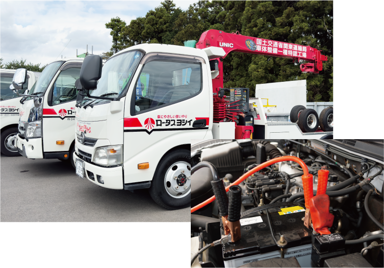 緊急のトラブルに対応するため、24時間レッカーサービスをご用意しております。バッテリー上がりからパンク修理、事故対応等、当社社員が出張にて対応させていただいております。なるべくお客様のご負担にならない方法でご対応させていただいておりますのでお電話かLINEにてご相談ください。当社にて自動車保険のご加入をお勧めします。